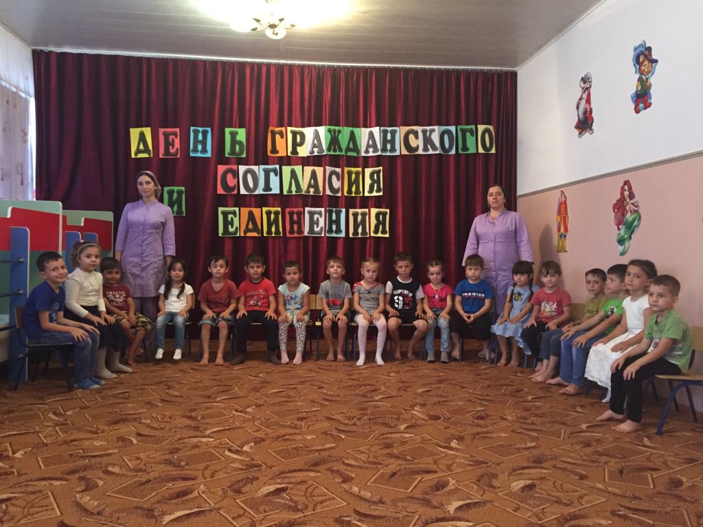 06.09.2018Один из самых важных дней в праздничном календаре Чеченской Республики- День гражданского согласия, единения и примерения, поскольку именно согласие и единство, являются важнейшими факторами становления и эффективного развития гражданского общества. В нашем дошкольном учреждении прошли тематические беседы на тему "День согласия, единения и примерения". Детям рассказали о происхождении этого праздника, показали документальный фильм в память об Ахмат-Хаджи Кадырове "Отец". Так же , дети рассказали стихи.